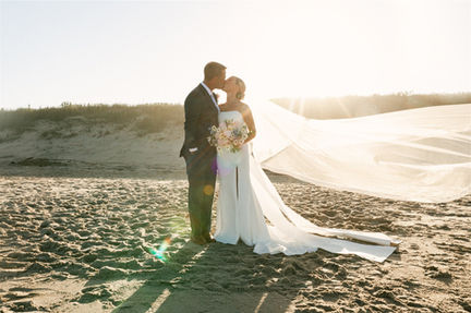 These two wanted to blend their connection to the laid back Outer Banks local surf culture and the importance traditionalism and spirituality plays in their personal life. It was so cool to see the blend of the these two worlds, down to the freaking church pews their own family drove down and set up out on the beach! All of these elements combined with the most perfect golden, fall beach day created the wedding of their absolute dreams.