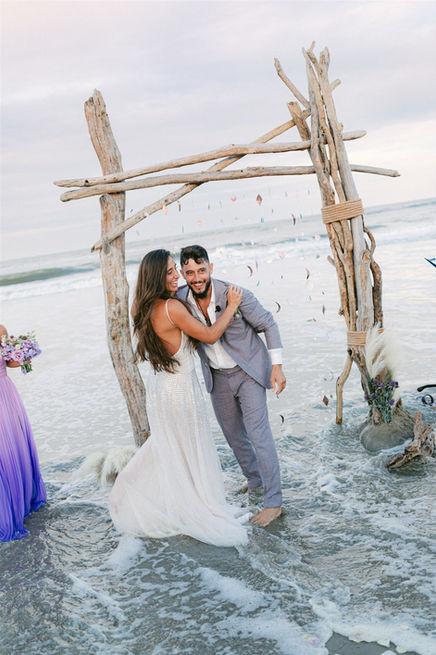 Their barefoot beach ceremony was unforgettable, with the tide gently reaching them as they said “I do,” literally marrying them in the water. With natural, minimal, and boho vibes, every detail reflected their love for the earth, the ocean, and each other. The joining of their two big families brought an overwhelming sense of warmth and connection, making this one of the most soulful and beautiful weddings imaginable.
